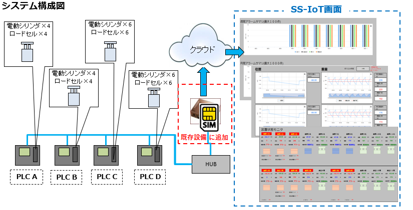 - 電動シリンダ、ロードセル20台をSS-IoTで見える化し、予知保全が可能に!!