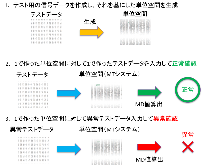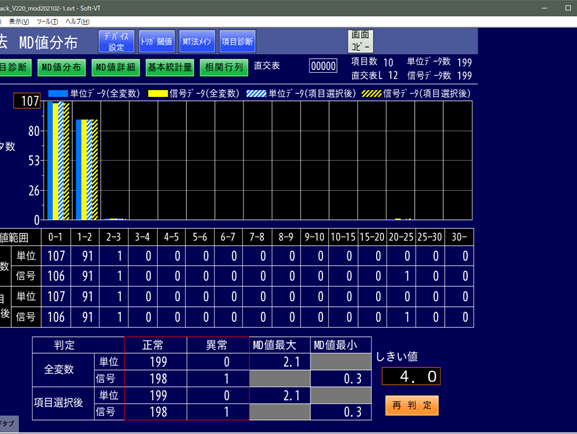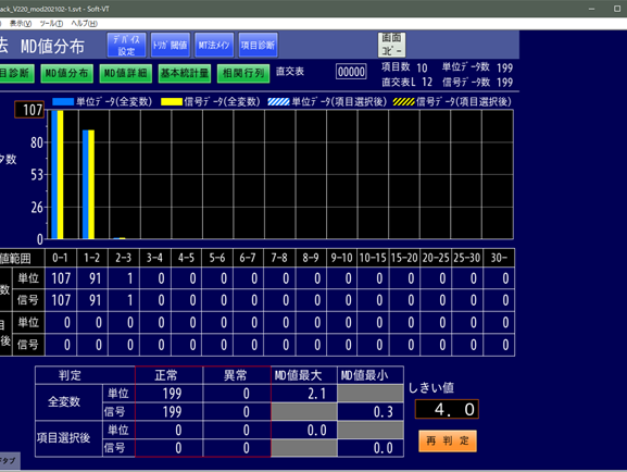 ・MD値が大きいもの(単位空間からマハラノビス距離が遠い)を異常とする