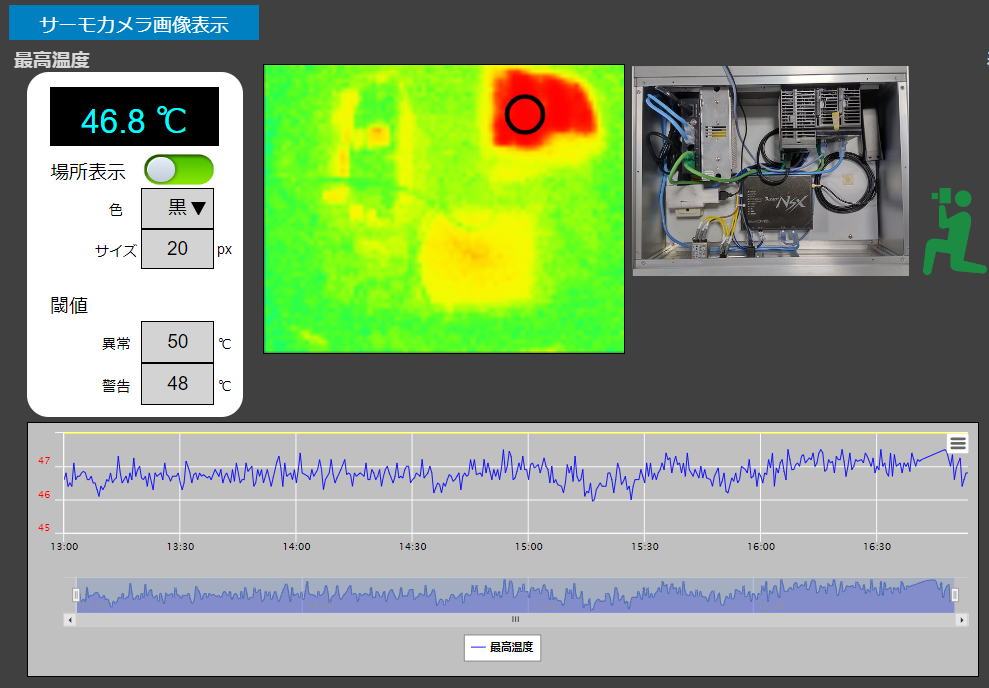 中央の熱画像は本アプリケーションが稼働している制御BOXの上面からサーモカメラにて撮像しています。