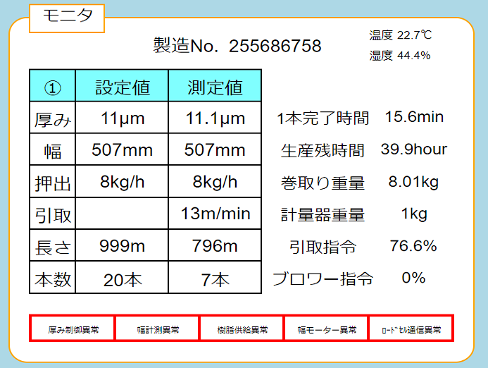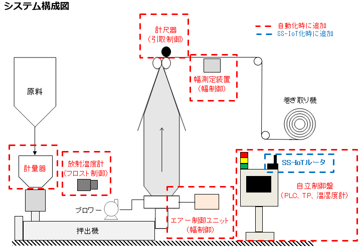 - 単層のインフレーションフィルム成形機の生産自動化後に設備の見える化をSS-IoTで実現