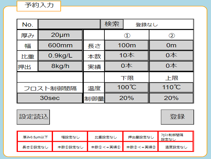 - ・タッチパネルで予約入力は5件まで行えるが、生産変更があった場合、現場のタッチパネルで入力する必要があった。